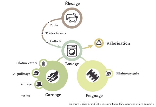 Le projet MOS-Laine s’inscrit dans la continuité du programme européen DEFI-Laine (« Développement d’une filière de valorisation de la laine à l’échelle de la Grande Région »). Ce programme a permis de rassembler les acteurs de la filière lainière pour étudier la faisabilité d’une transformation locale de la laine via l’innovation et le développement de nouveaux produits.